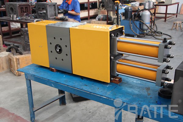 (3)普通換網(wǎng)器都是濾網(wǎng)(多孔板)載體直接與塑料熔體接觸,由于換網(wǎng)需要來回移動(dòng)磨擦,這中間極易產(chǎn)生黑點(diǎn)雜質(zhì),濾網(wǎng)清潔的再干凈也無效,因?yàn)椴荒苤苯忧鍧嵼d體。而專用換網(wǎng)器就不一樣:濾網(wǎng)(多孔板)和載體成一個(gè)整體變成一個(gè)網(wǎng)塊,而且讓它循環(huán)使用單向移動(dòng),避免了黑點(diǎn)雜質(zhì)的產(chǎn)生,加之換網(wǎng)后又可一起拿下清理,干凈的網(wǎng)塊再裝上新濾網(wǎng)絕無黑點(diǎn)雜質(zhì)。(4)PET的流動(dòng)性極好,為保持該換網(wǎng)器機(jī)械剛性密封的穩(wěn)定性,其所用的鋼材比一般換網(wǎng)器的要耐磨耐熱,流道也更光滑。